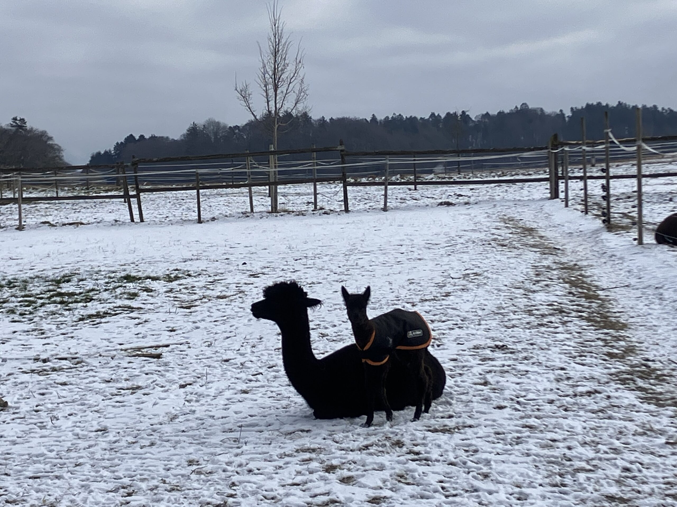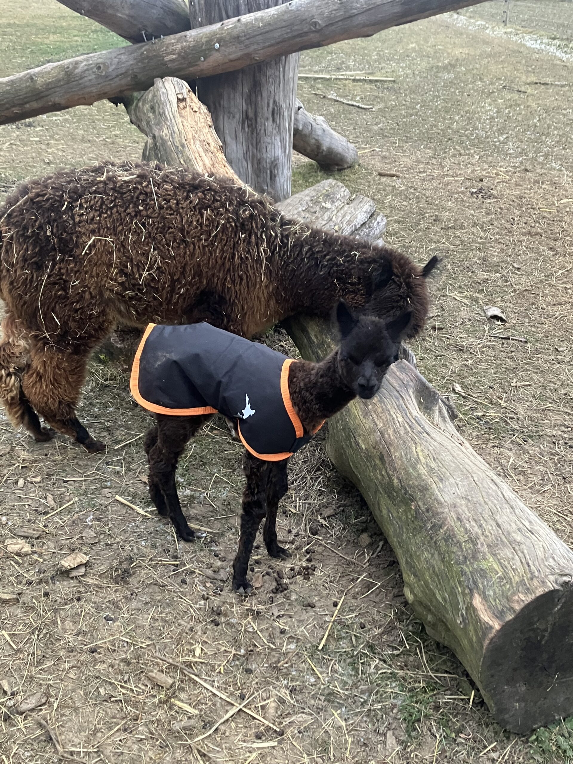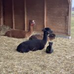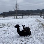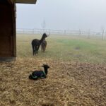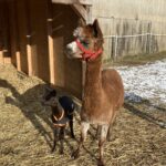 Zutraulich und verschmust zeigt sich das schwarze Alpaka, welches das Ebenbild seines Vaters Orion ist.